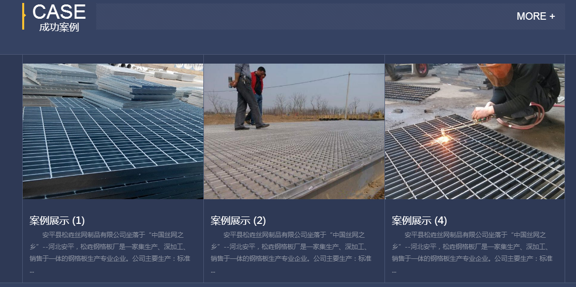 描述:安平县松垚丝网制品有限公司坐落于“地区丝网之乡”--河北安平,松垚钢格板厂是一家集生产、深加工、销售于一体的钢格板生产专业企业。